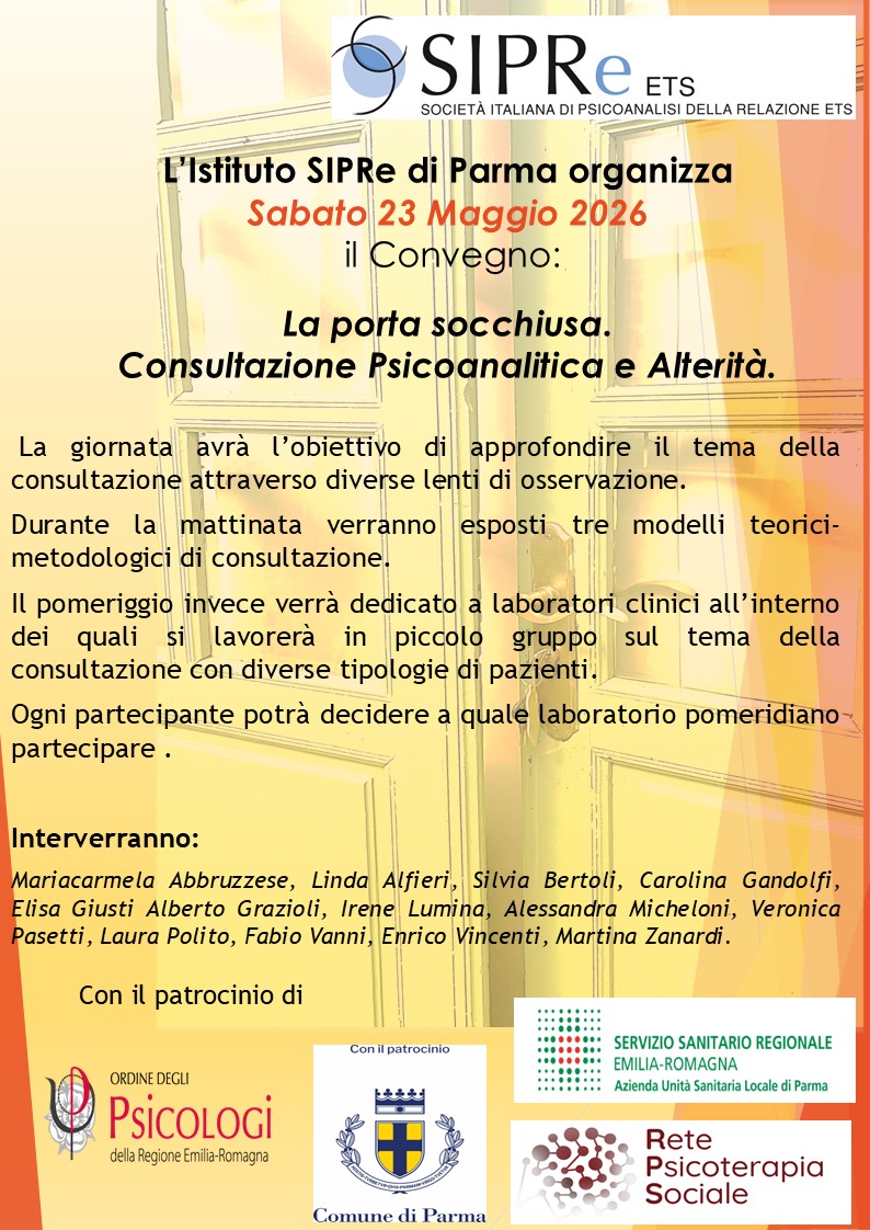 SIPRe – Società Italiana di Psicoanalisi della Relazione – P. Iva: 01754061008 – Privacy – Cookie’s Policy